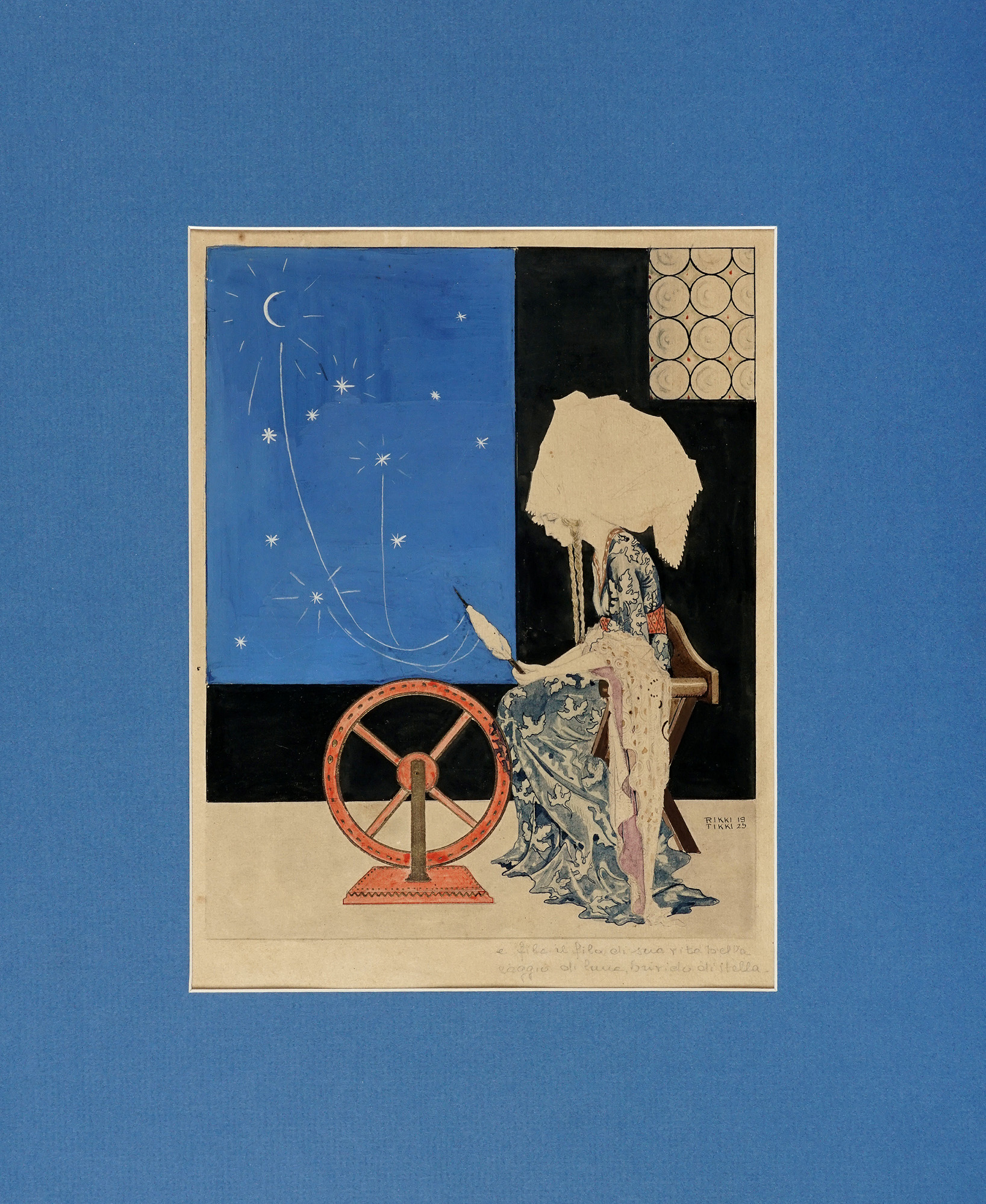 Anonimo del XX secolo, La filatrice di stelle. 1925. Matita, tempere, penna e...