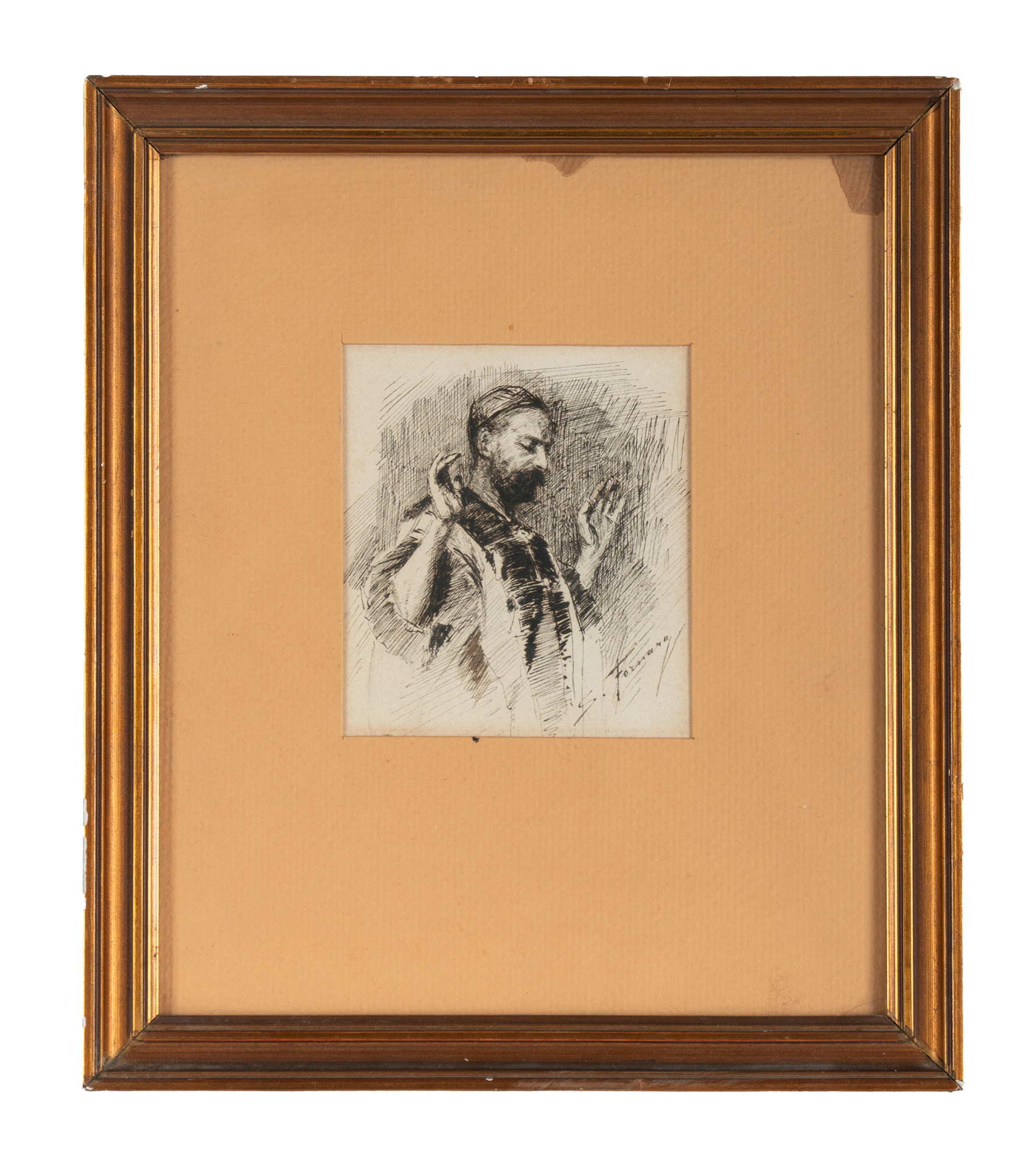 Sallustio Fornara, Figura orientale. Penna e inchiostro di china bruno su...