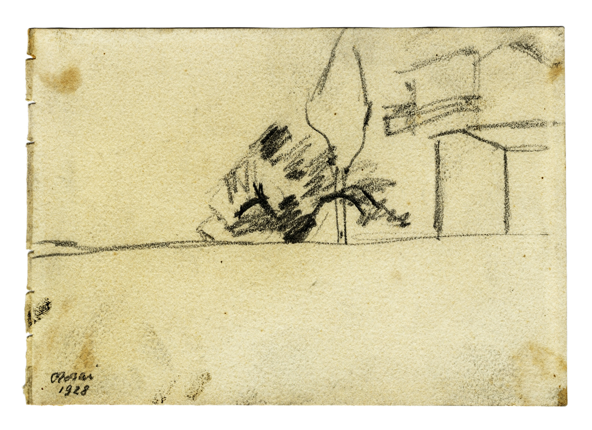 Ottone Rosai, Muro, cipresso e case (studio per Piazza del Carmine). 1928....