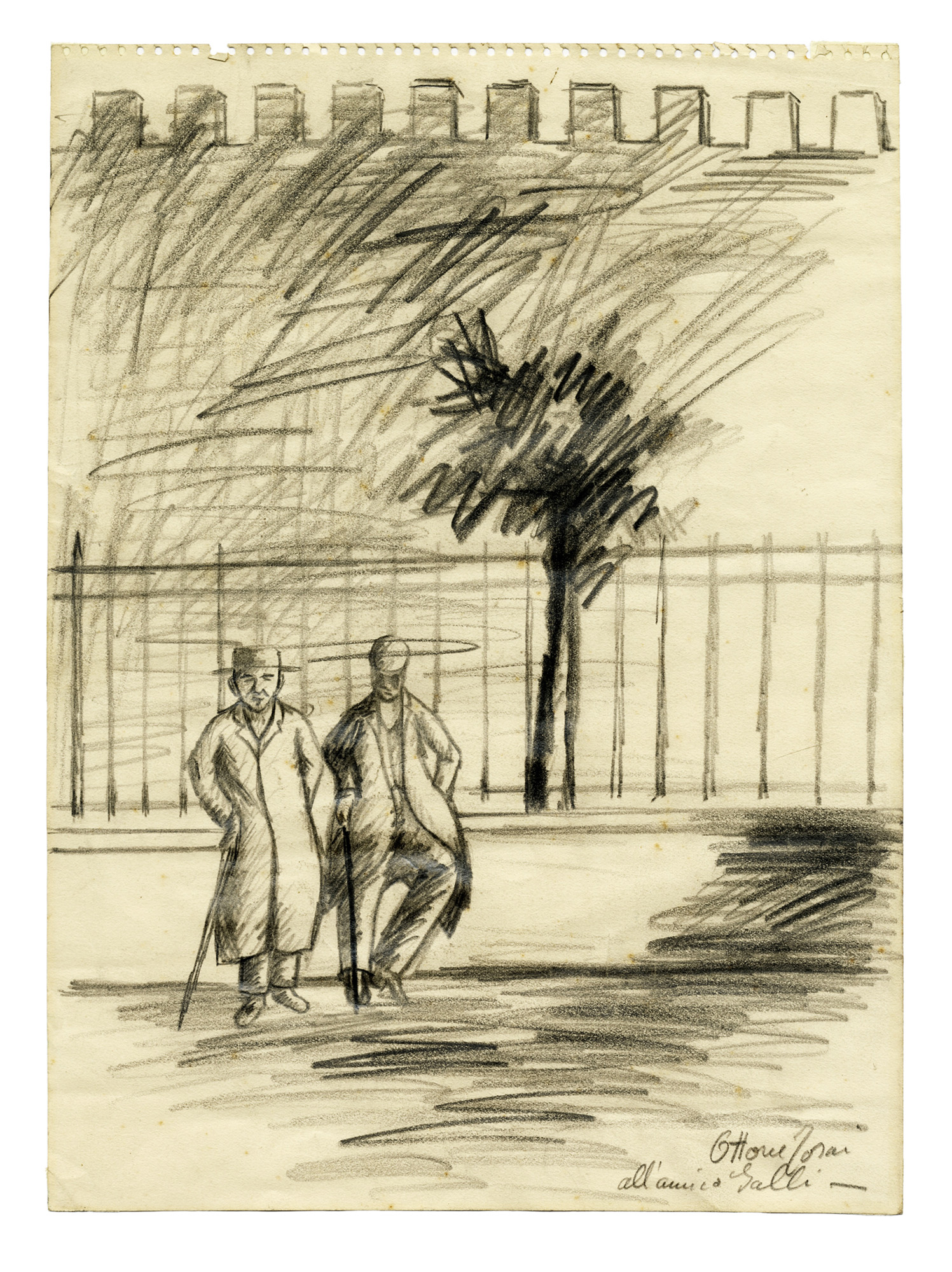 Ottone Rosai, Omini. 1929 ca. Matita su carta. mm 309x230. Firmata e dedicata...
