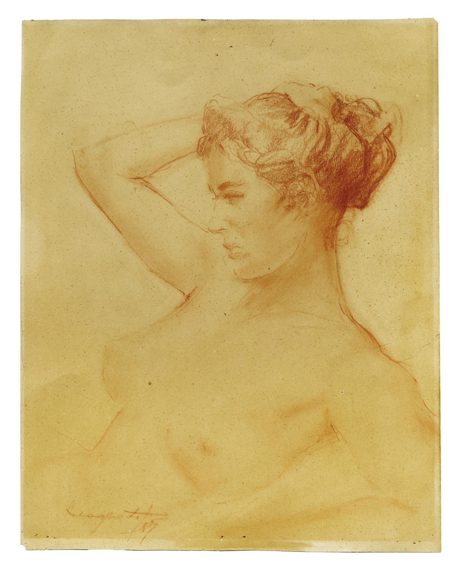 Carlo Stragliati, Nudo femminile. 1887. Sanguigna su carta greve. mm 310x245....