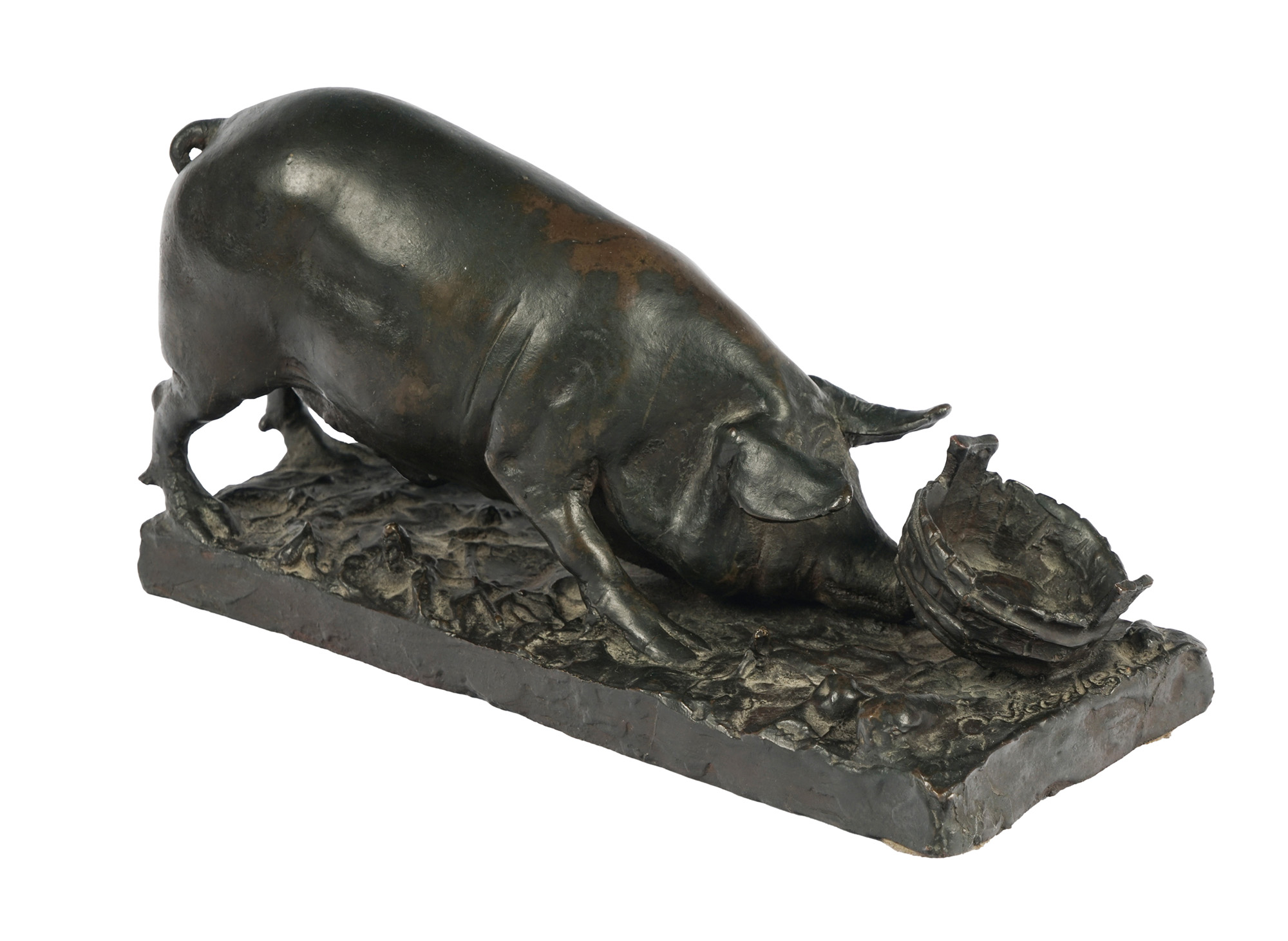 Gioacchino Varlese, Maiale. Bronzo a cera persa. cm 12x23x9,5. Firma posta...