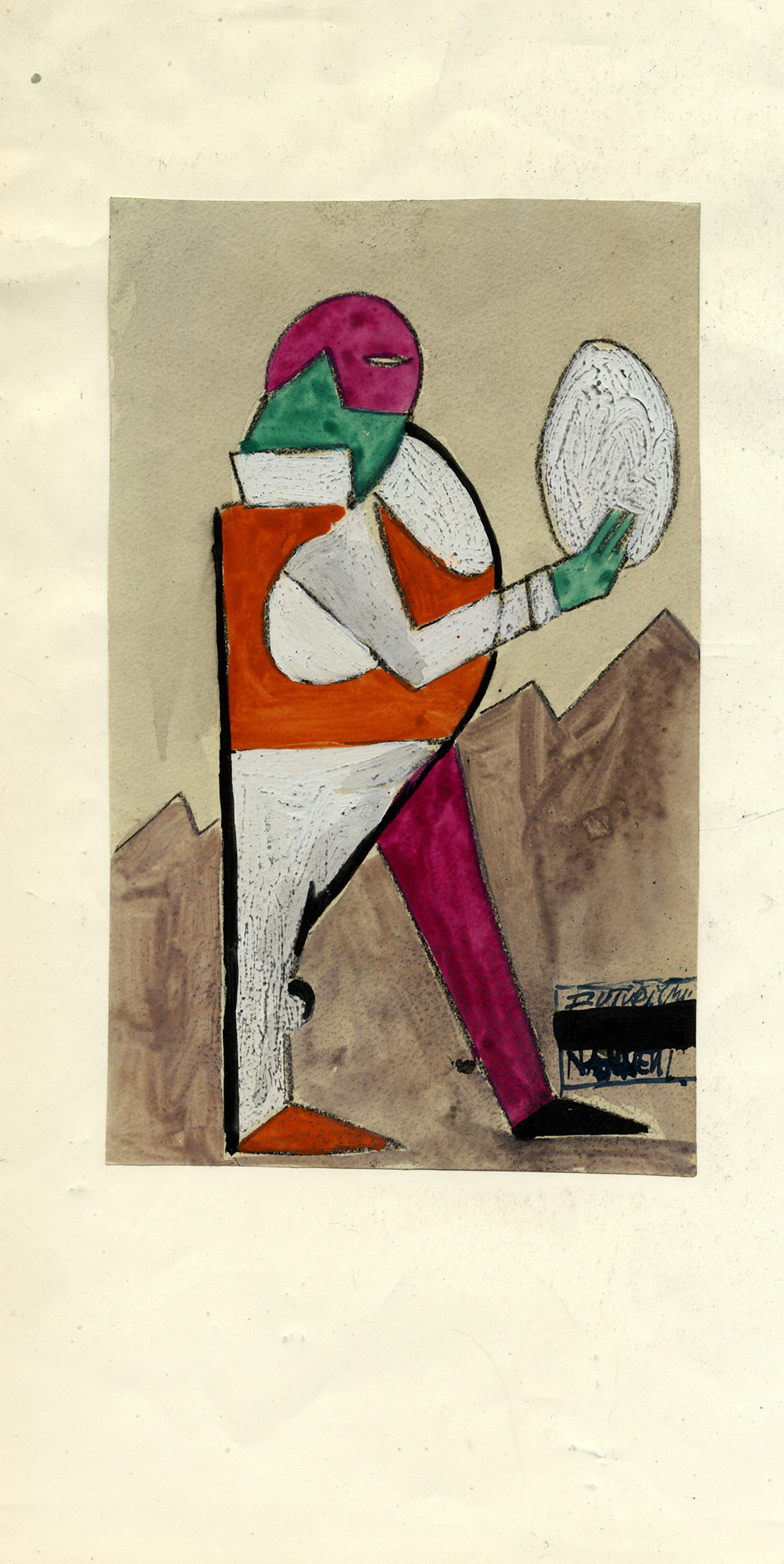 Vieri Nannetti, Figura futurista. Tecnica mista su carta. mm 197x120. Firma...