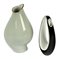 1) Heidenreich F. per Rosenthal Germany, Vaso Sieben-Gesichter (Sette volti). 1950 ca. Porcellana verde\bianca con bordo nobilitato in oro. cm 21x12x12. Timbro Rosenthal Germany sul fondo del vaso con etichetta oro "La Tavola Moderna - Firenze" applicata poco sopra. 2) Kuhn B. per Rosenthal Germany, Vaso per orchidee Kummet. 1950 ca. Porcellata nera/bianca oblunga a doppia bocca. Firma e codice "2661\0" incisi sul fondo, circondando il timbro Rosenthal Germany. (2) Ottima conservazione.