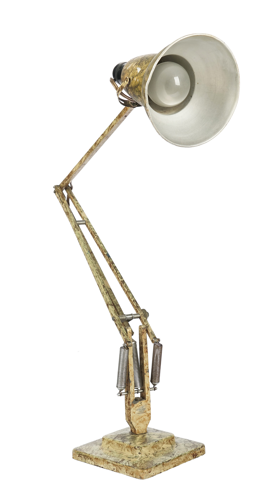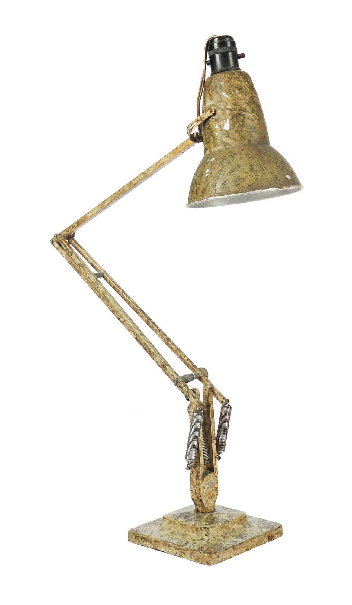 Metallo smaltato. cm 53x48x15. Nome del modello e Herbert Terry, produttore della lampada, incisi su ambo i lati del primo braccio rotante. Progetto ideato da Carwardine nel 1932 e prodotto dall'azienda inglese nel 1935. Completo di tutte le sue parti originali e funzionanti. Nonostante si tratti di una lampada d'epoca, tutte le braccia riescono a tenere la posa senza cedimenti. (1) Tracce di ruggine sulle molle alla base. Mancanze di smalto concentrate principalmente sul paralume. Buona conservazione generale.