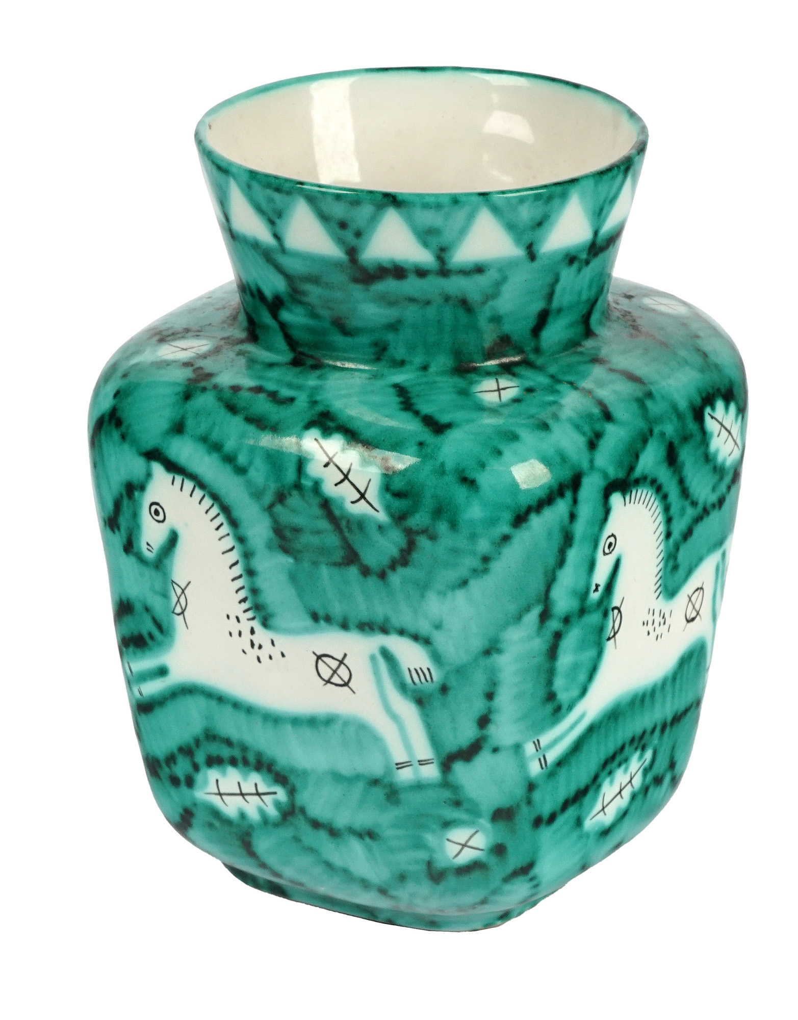 Guido Gambone, Vaso con decori equestri. Terracotta maiolicata e dipinta a...