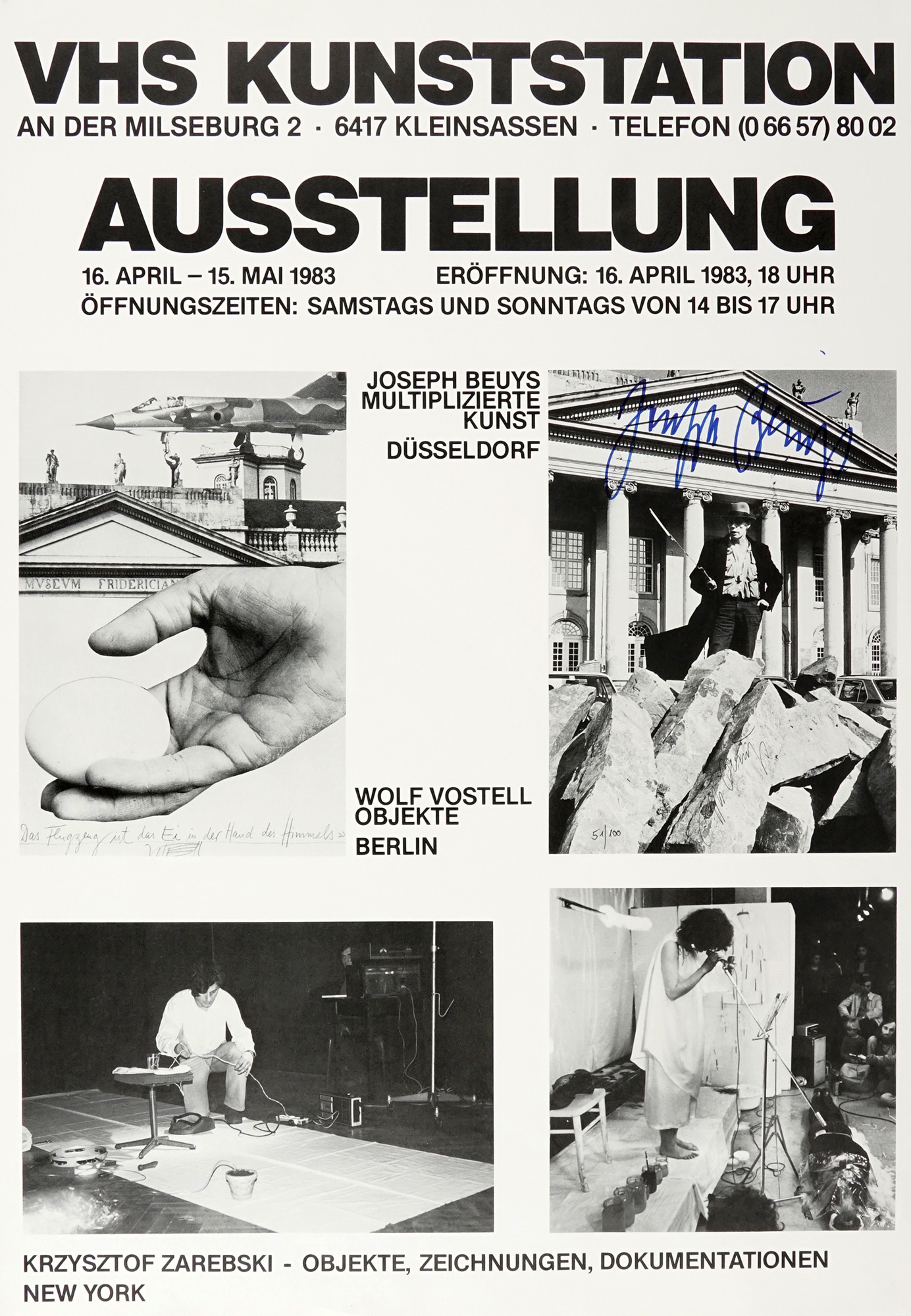 Joseph Beuys, VHS Kunststation. Ausstellung. 16. April - 15. Mai 1983. Manifesto per la mostra con firma autografa. 1983.