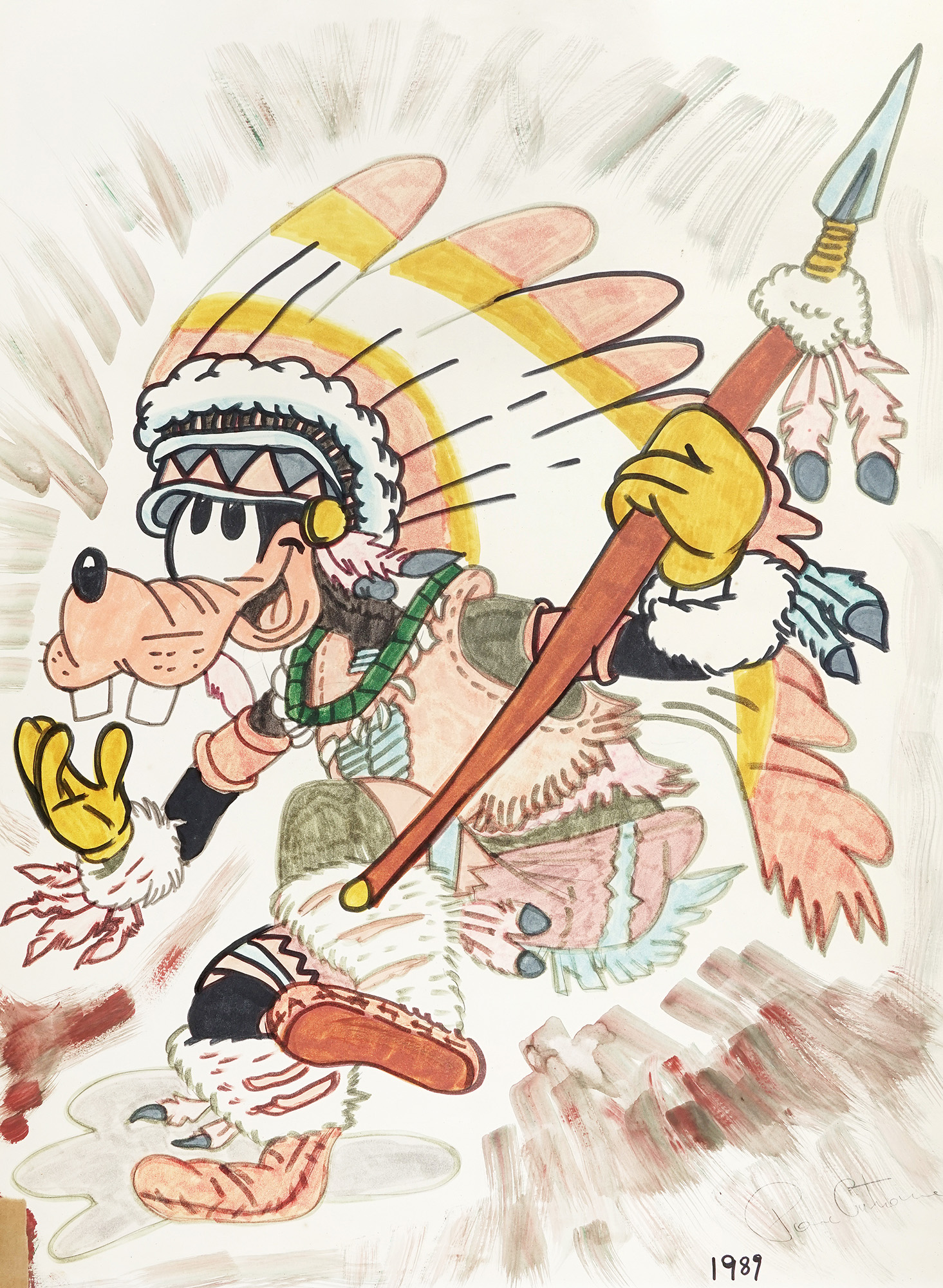 Ronnie Cutrone, Pippo vestito da Indiano. 1989 (?). Matita, pennarello e...