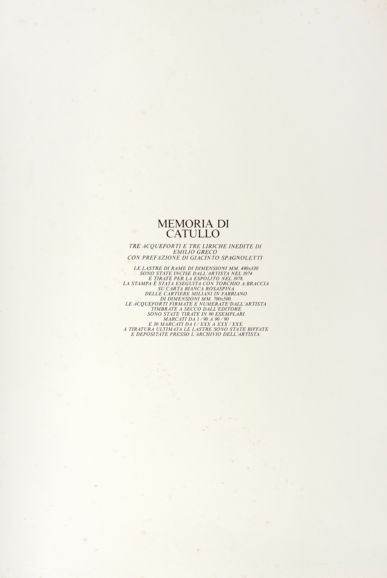 Emilio Greco, Memoria di Catullo. 1978. Cartella editoriale mm 765x545 in...