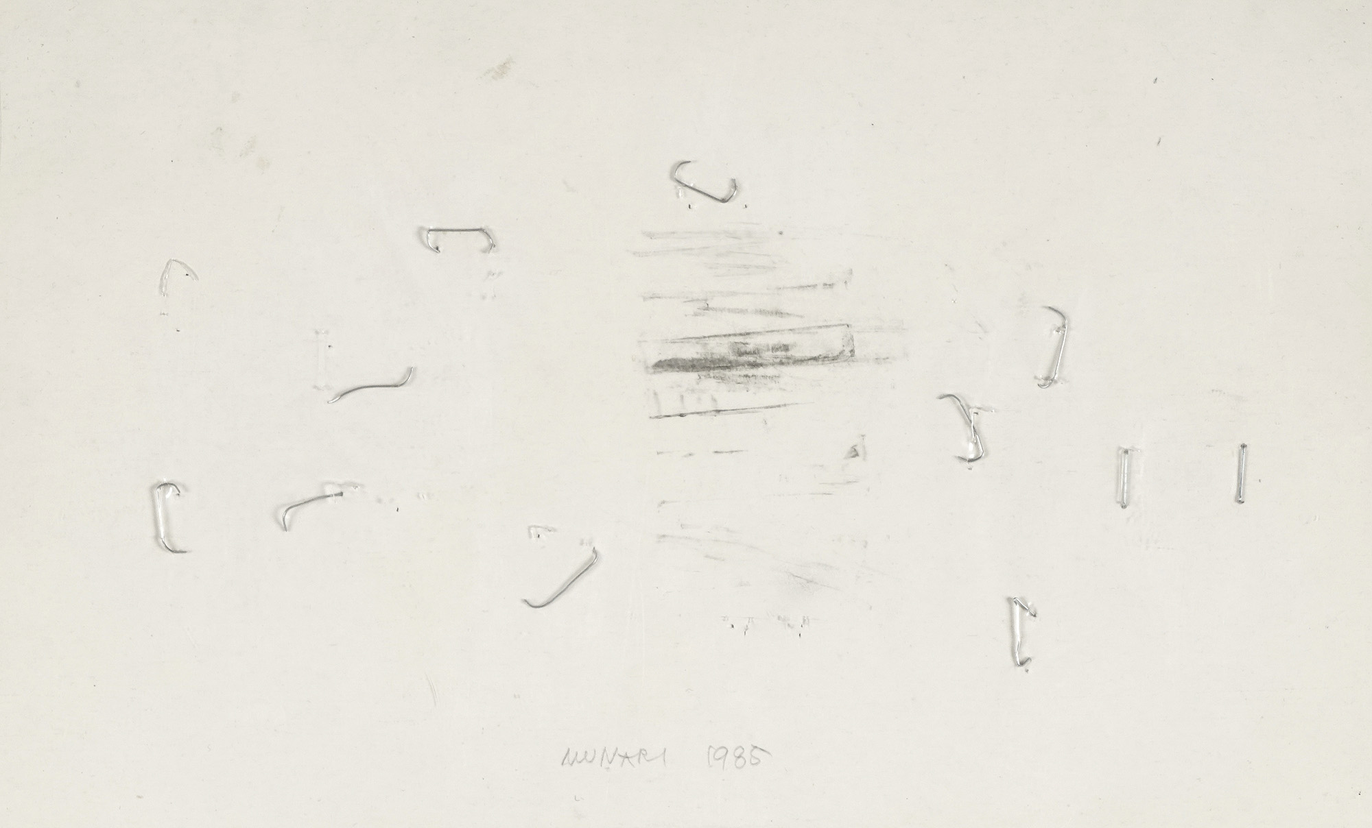 Bruno Munari, Senza titolo. 1985. Cartoncino, foglio di plastica, graffette...