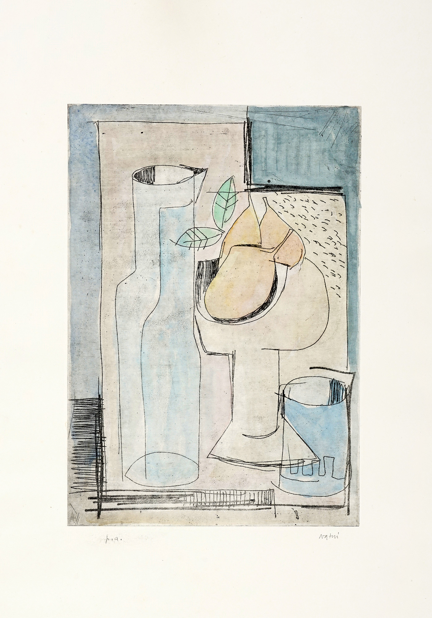 1) Natura morta. Acquaforte acquerellata a mano. mm 310x215. Foglio: 496x347. Firma a matita in basso a destra e "p.a" in basso a sinistra. 2) Senza titolo. Acquaforte. mm 295x196. Foglio: mm 500x396. Firma in basso a destra e tiratura in basso a sinistra. Es. 3/10. (2) OPERA 1: Una spellatura lieve della carta in basso a sinistra. Impressione ottima. OPERA 2: Qualche lievissima macchiolina in basso a destra. Inchiostrazione corposa. Rara.