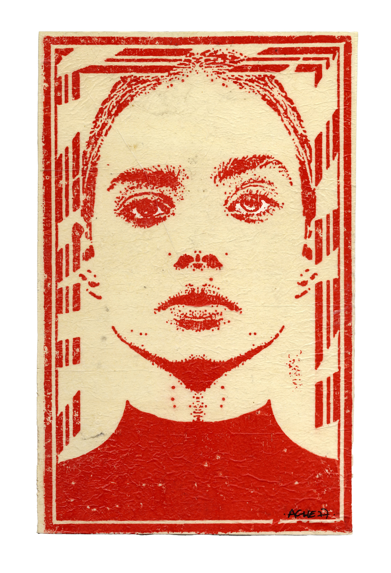 Ache77, I Resist. Xilografia a inchiostro rosso su velina. mm 320x205. Firma...