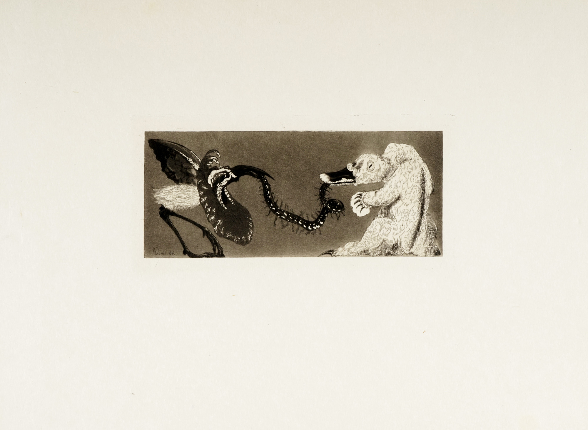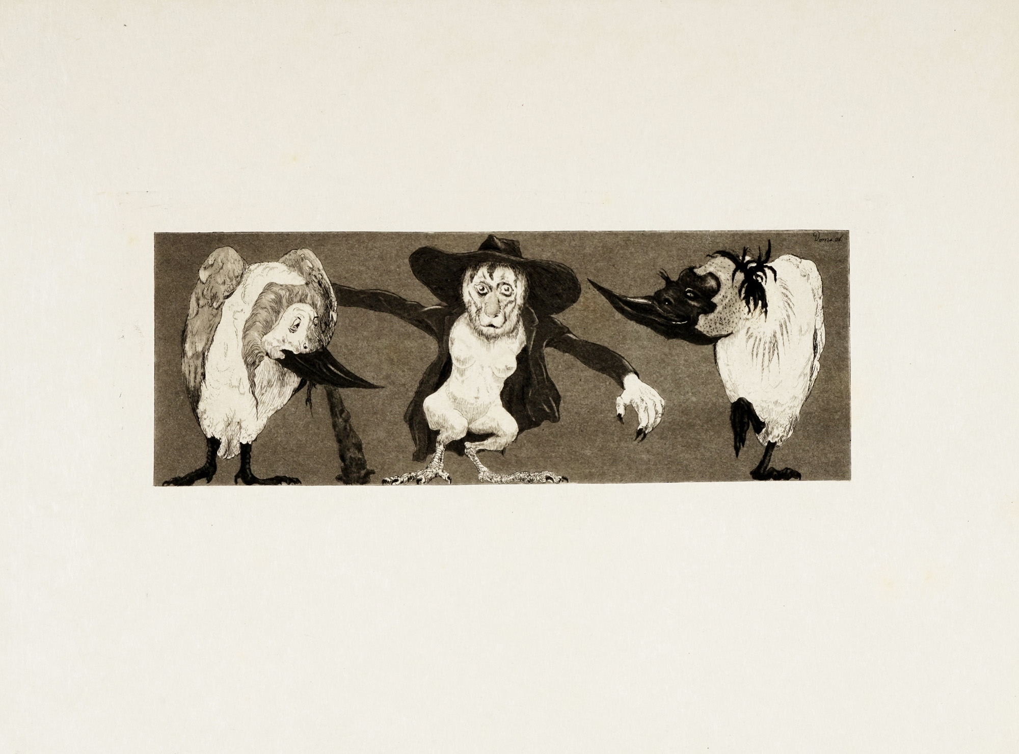Wilhelm Doms, Grotesken. Zwölf Radierungen von Wilhelm Doms. 1907. In-4° (frontespizio, colophon, indice, occhietto), 12 tavole incise all'acquaforte e acquatinta firmate e datate in lastra 1906. A fogli sciolti entro cartella editoriale in mezza pergamena con punte e titolo oro al piatto superiore. Edizione di 300 esemplari numerati e firmati. Es. 19. (1)In-4° (frontespizio, colophon, indice, occhietto), 12 tavole incise all'acquaforte e acquatinta firmate e datate in lastra 1906. A fogli sciolti entro cartella editoriale in mezza pergamena con punte e titolo oro al piatto superiore. Edizione di 300 esemplari numerati e firmati. Es. 19. (1) Tracce d'uso e qualche spellatura alla cartella. I fogli sono in buona conservazione.