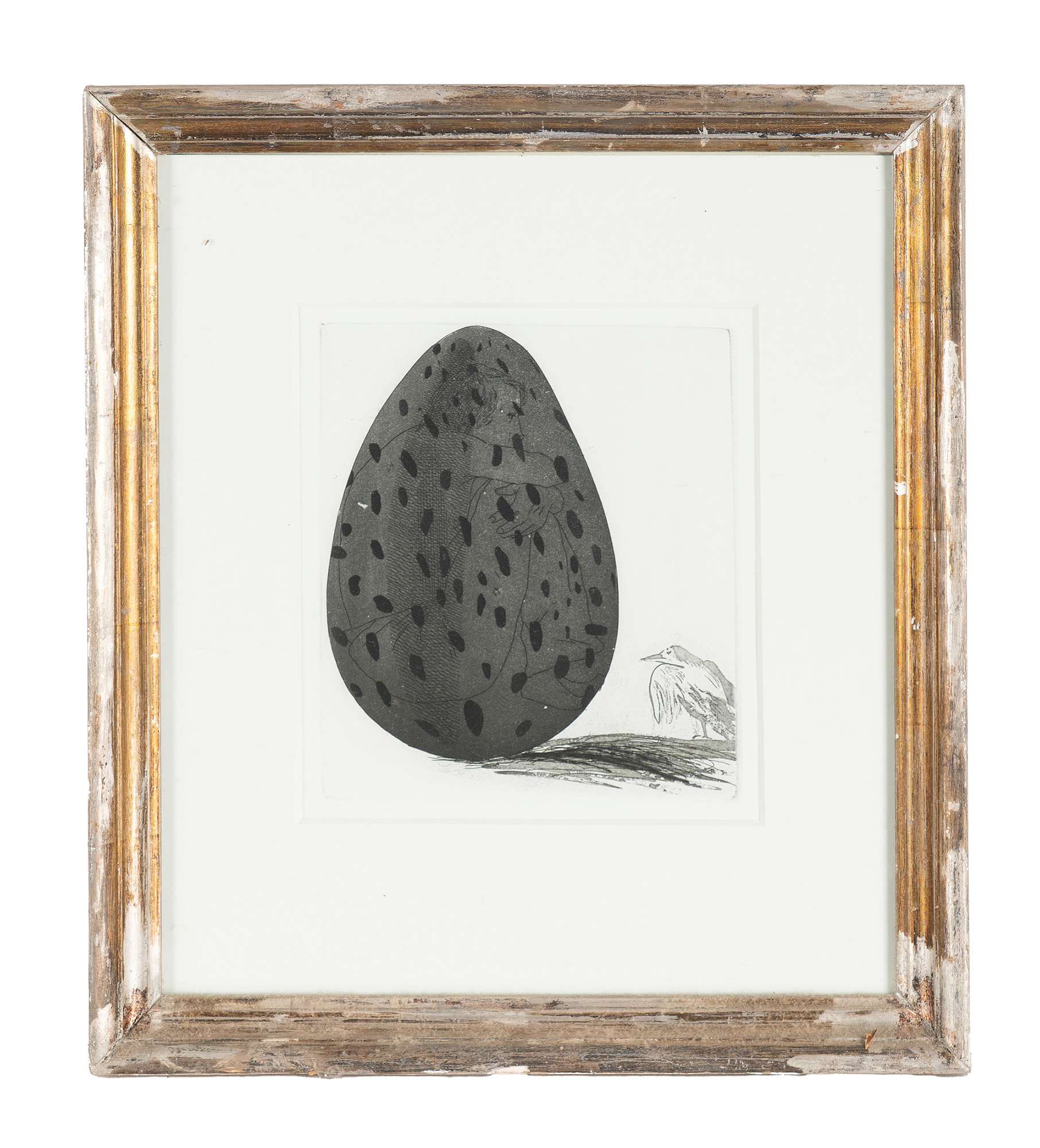 David Hockney, The boy hidden in an egg. 1969. Acquaforte. mm 200x170. Foglio: mm 355x300 (con passe-partout). Questa è una delle trentanove incisioni che l'artista ha creato per la serie Six Fairy Tales from the Brothers Grimm. (1)Acquaforte. mm 200x170. Foglio: mm 355x300 (con passe-partout). Questa è una delle trentanove incisioni che l'artista ha creato per la serie Six Fairy Tales from the Brothers Grimm. (1) In cornice: cm 41,5x36. Applicata a passe-partout. Ottima conservazione e impressione molto corposa.