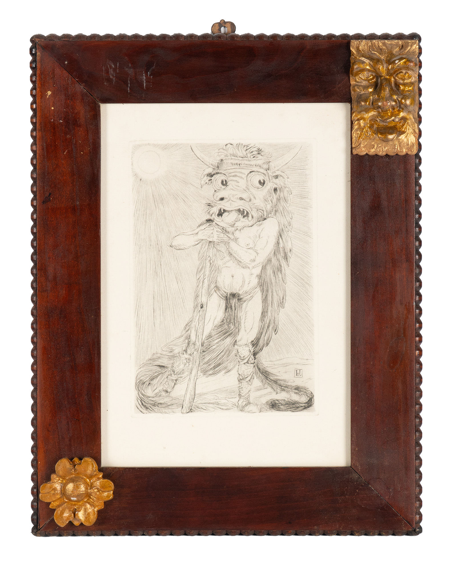 Louis Jou [pseud. di Luis Felipe-Vicente Jou i Senabre], Senza titolo 1926. Acquaforte. mm 222x147. Foglio: mm 315x210. Monogrammata in lastra in basso a destra. (1)Acquaforte. mm 222x147. Foglio: mm 315x210. Monogrammata in lastra in basso a destra. (1) In cornice: cm 40x31.