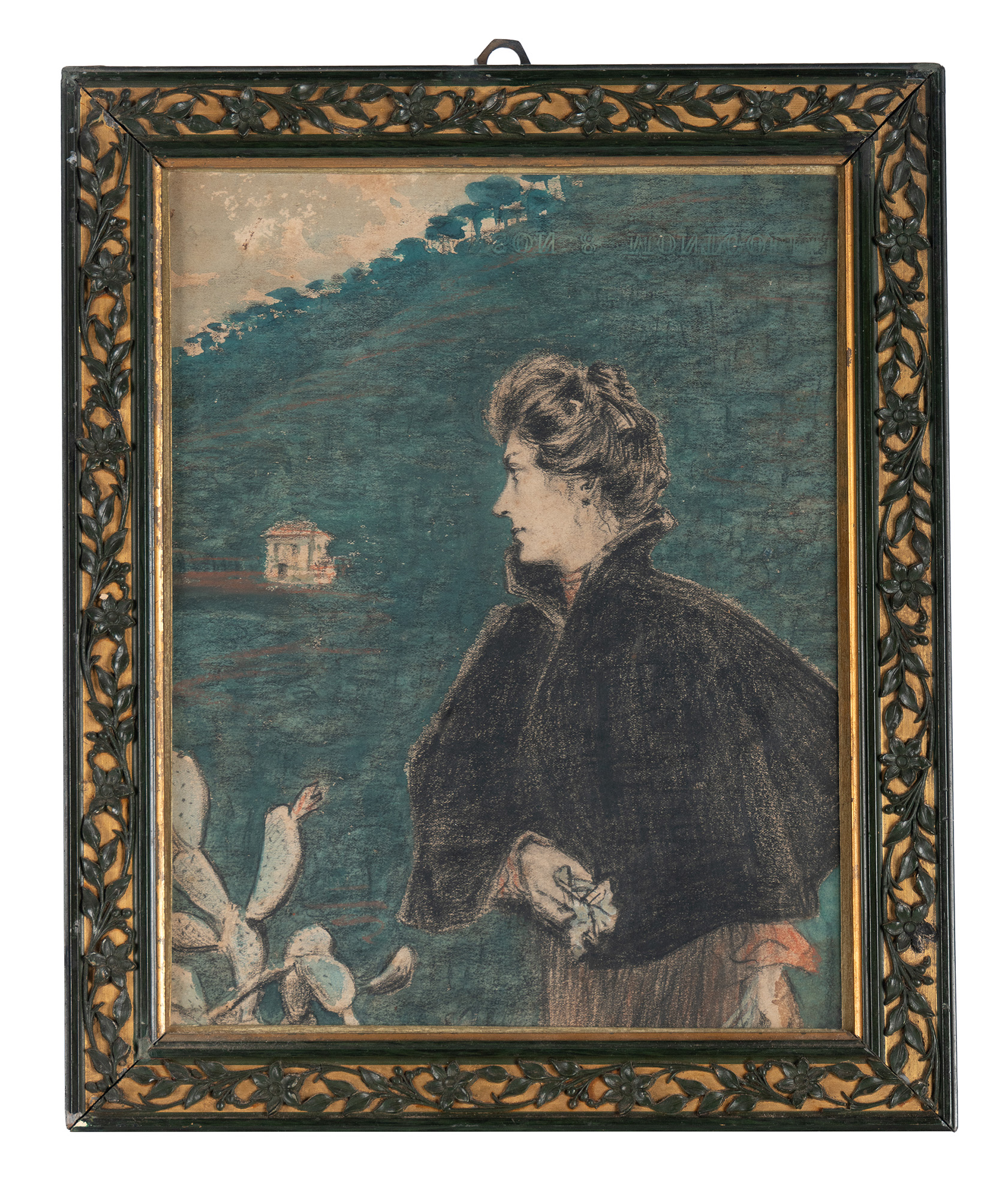 Anonimo del XIX secolo, La dama. Carboncino e acquerello su carta. mm...