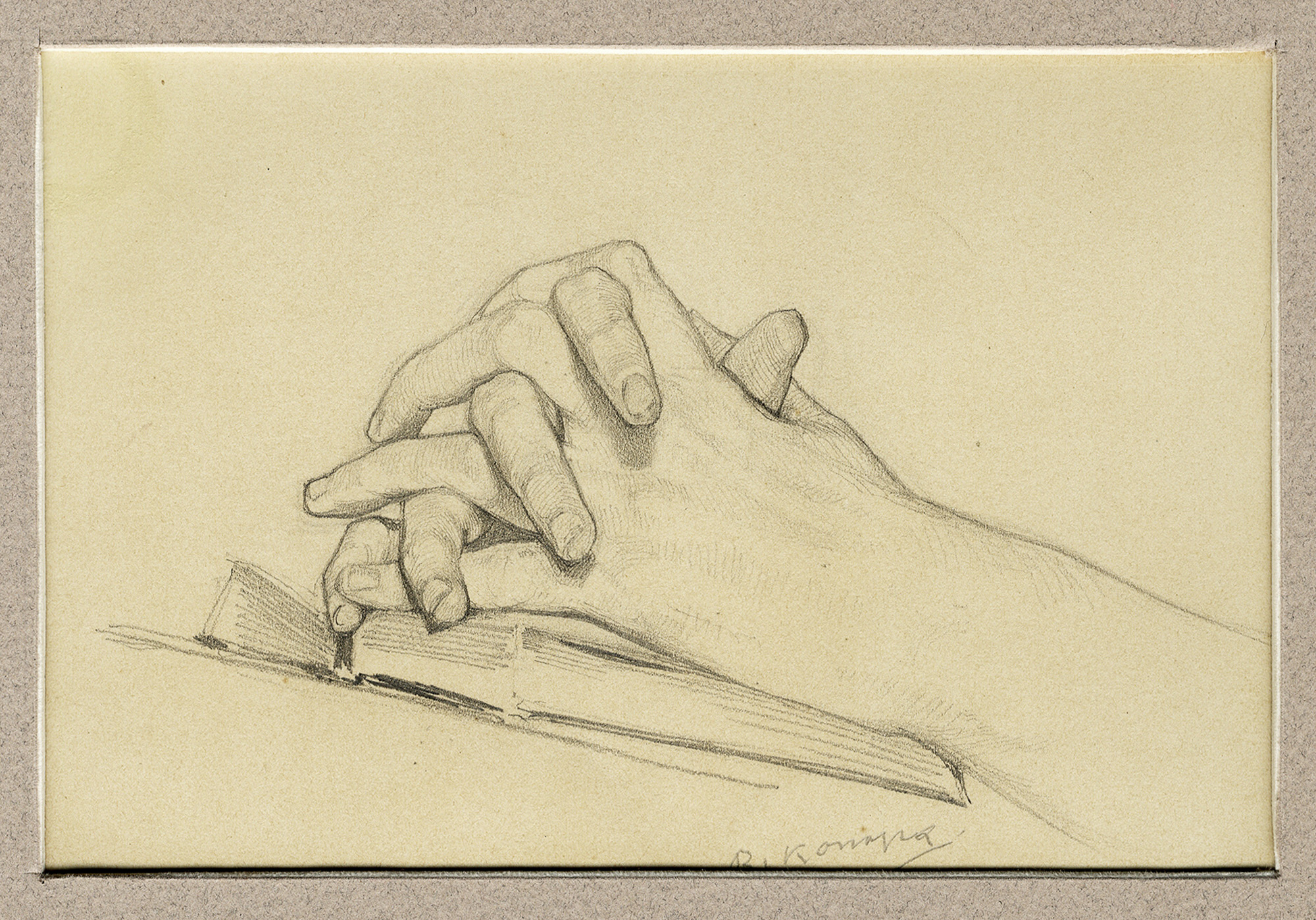 Rudolf Konopa, Lotto composto di 2 disegni. 1890. 1) Le mani congiunte su...