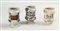 Tre albarelli diversi a decoro calligrafico, XVIII secolo altezza cm 14...