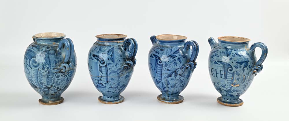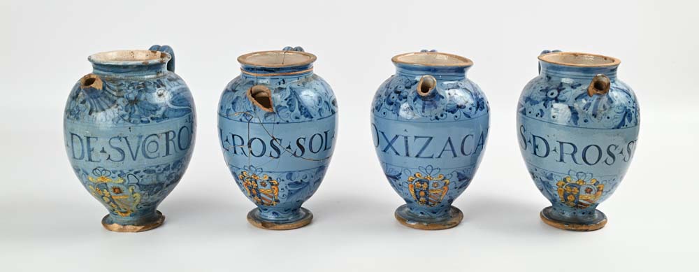 Lotto 10 | Quattro orcioli in maiolica con stemma e iscrizioni altezza cm 21