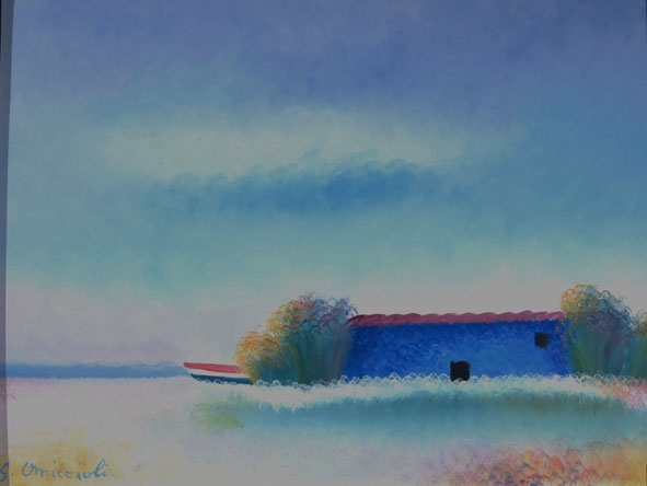 OMICCIOLI GIOVANNI (Roma 1901 - Roma 1975) "Capanno blu" 1970 Olio su...