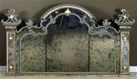 CAMINIERA Caminiera in legno laccato in azzurro e crema, Piemonte XVIII secolo H 144 170x10 Difetti, restauri Mantelpiece in lacquered wood in blue and cream, Piedmont eighteenth