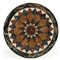 Tavolino in legno dorato con piano circolare in commesso di marmi colorati, XIX secolo cm 72,5x51 piano caratterizzato da un mosaico a forma di stella inclusa in una grande corolla su fondo bianco entro cornice di marmo portoro; fascia percorsa da rami d'alloro intagliati, gambe rastremate sottolineate da nervature, riunite da traverse a crociera