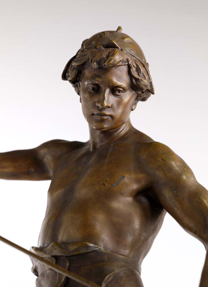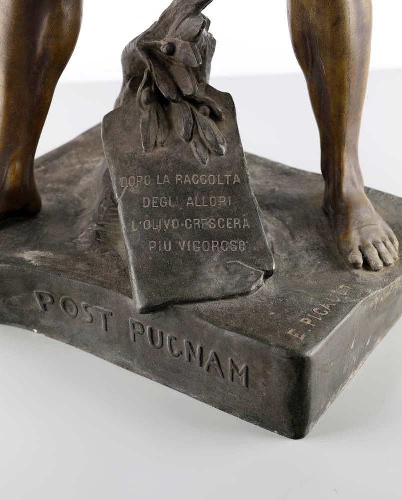 Emile Louis Picault (dapres) Parigi 1833 - ? 1915 Post Pugnam bronzo "Dopo la raccolta degli allori l'olivo crescerà più vigoroso". Titolo sul profilo della base Collezione privata, Siena