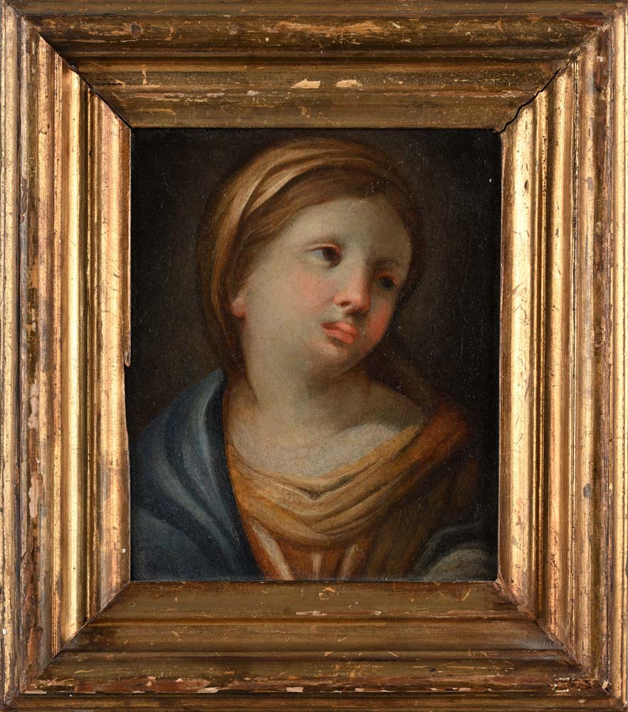Pittore del XVIII secolo Madonna olio su tela cm 19x16 - con cornice cm 29,5x26 cornice modanata in legno dorato