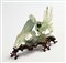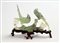Intaglio in giada raff. due uccelli su un ramo, base in legno cm 14,5x21x7 -...