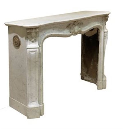 CAMINO IN MARMO Camino in marmo bianco, Luigi XV a tre conchiglie H 105 132x50 White marble fireplace, Louis XV three shells