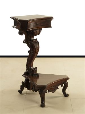 INGINOCCHIATOIO Inginocchiatoio in legno di noce finemente scolpito con tiretto sul fronte, epoca XIX secolo H 90 52x53 Restauri Kneeler finely carved walnut with drawer on the front, antique nineteenth century