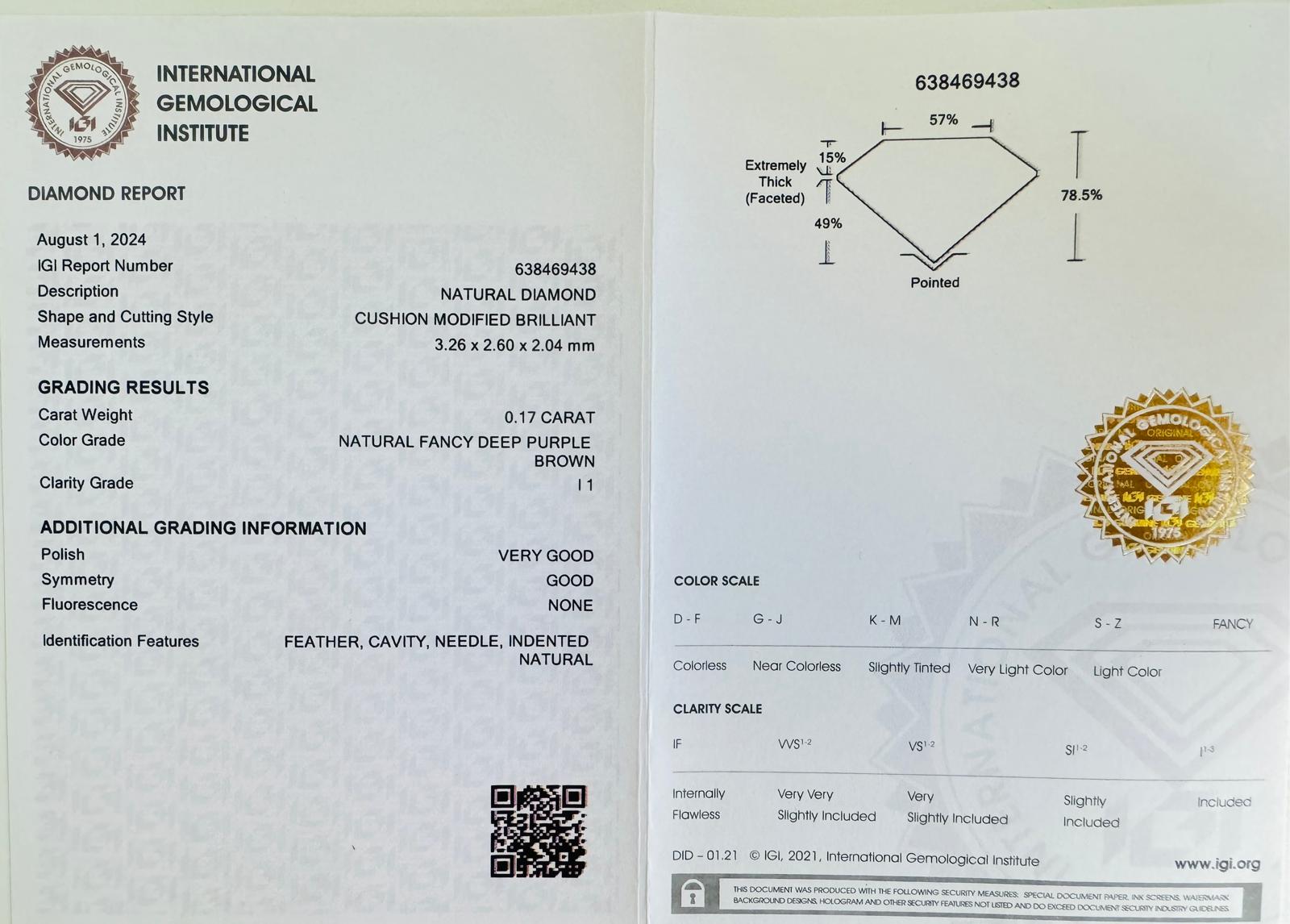 DIAMANTE NATURAL POLISHED 0,17 CARATI VIOLA MARRONE INTENSO - PUREZZA I1 - CERTIFICATO IGI - EY40701-2 - COMMISSIONE D’ASTA 25%