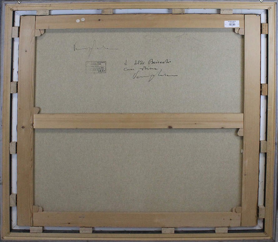 VINCENZO BALSAMO, 1991, olio su tela, dim.119x118 cm. Al verso: dedica ad personam, N° di archivio e firma. Opera archiviata presso l'archivio Vincenzo Balsamo al numero 252. Opera con cornice
