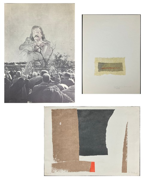 Lotto composto da due litografie rispettivamente di William Xerra e Italo Valenti e una tecnica mista su carta di Beltrametti, di soggetti e misure diverse