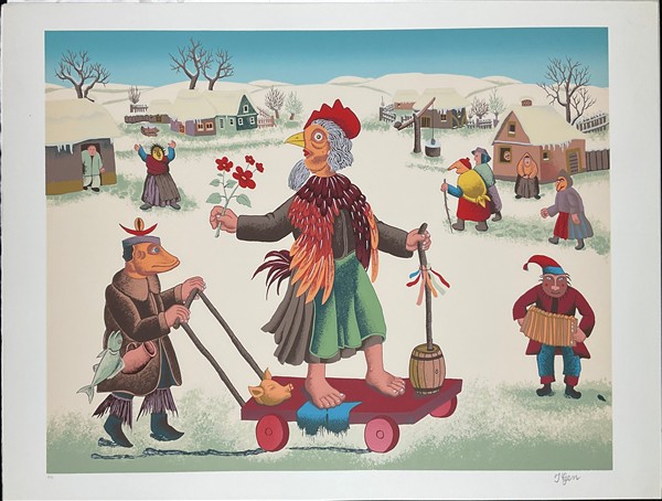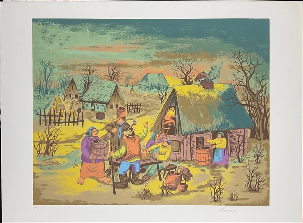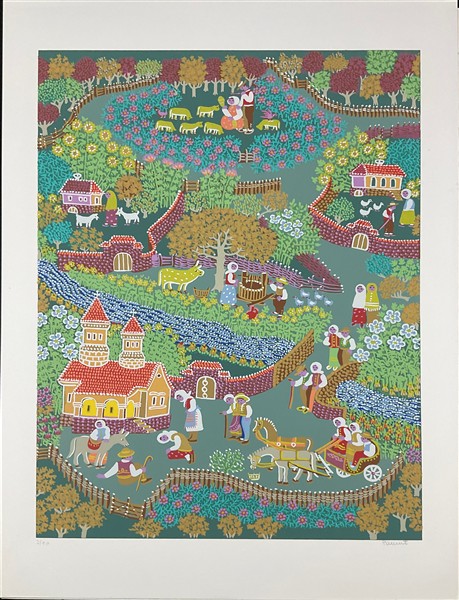 Lotto composto da sette serigrafie di soggetti Naif di autori differenti