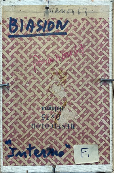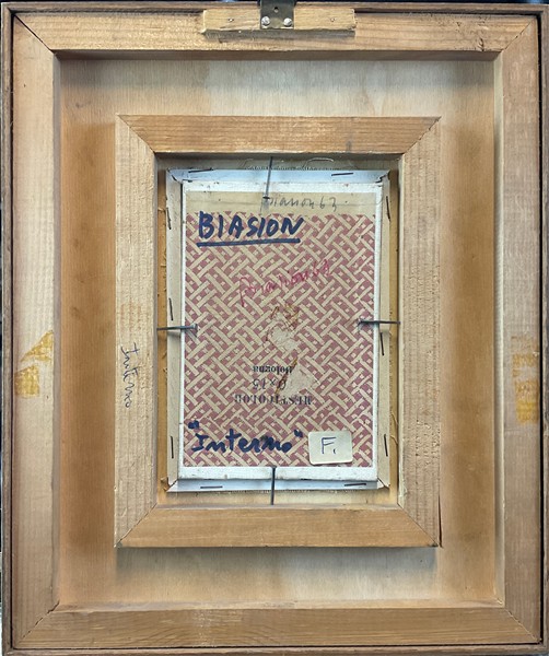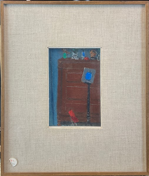 Renzo Biasion "Il cassettone" e "Interno" 1963 due oli su cartone telato cm 15x1