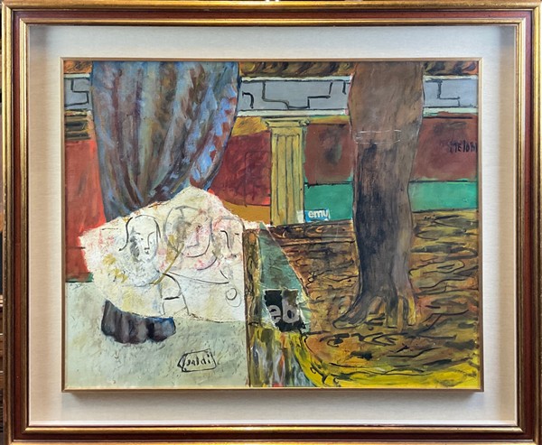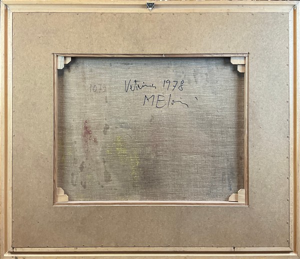 Gino Meloni "Vetrina" 1978 olio e collage su tela cm 65x81 firmato in alto a des