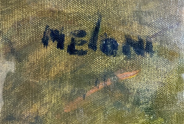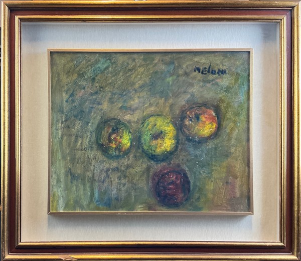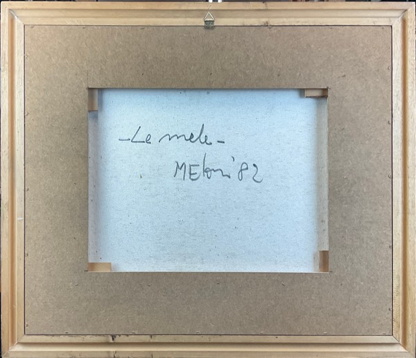 Lotto 582 | Gino Meloni "Le mele" 1982 olio su tela cm 39,5x49,5 firmato in alto a destra; t