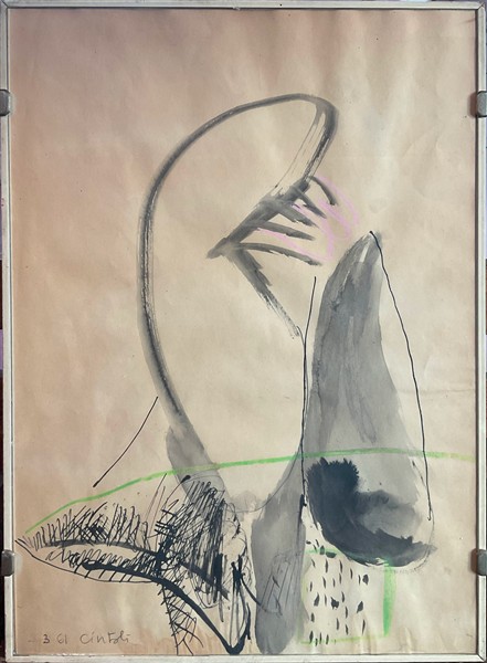 Claudio Cintoli "Senza titolo" 1961 tecnica mista su carta cm 43,8x31,5 firmato