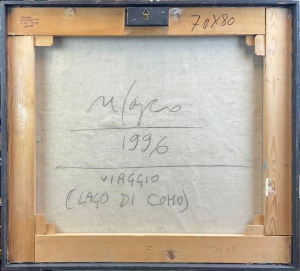 Velasco Vitali "Viaggio (lago di Como)" 1996 olio su tela cm 70x80 firmato in ba