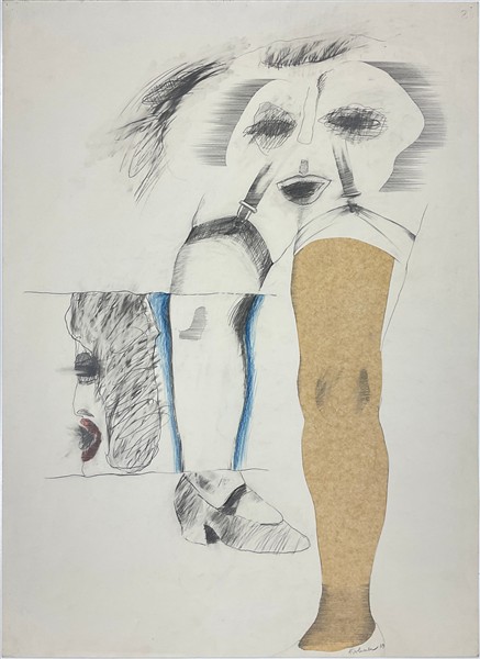 Lotto 689 | Adolf Frohner "Tronco - testa" 1969 tecnica mista e collage su carta cm 86x62,5