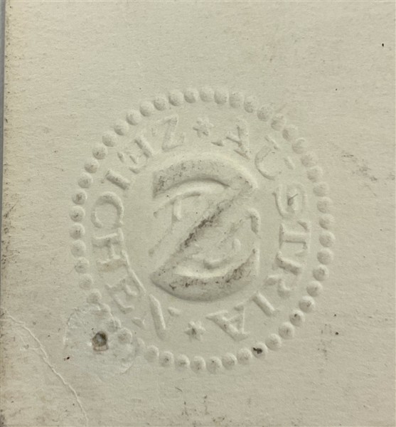 firmato e datato in basso a destra e timbro a secco Austrian Zeichen; titolato al retro (lievi difetti)