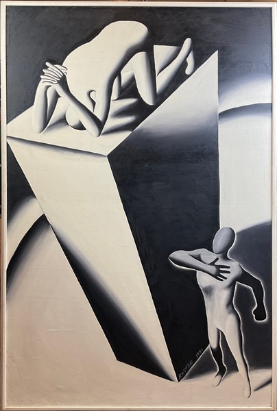 Kostabi Mark "Glory and privilige" 1990 olio su tela cm 150x100 firmato, titolat