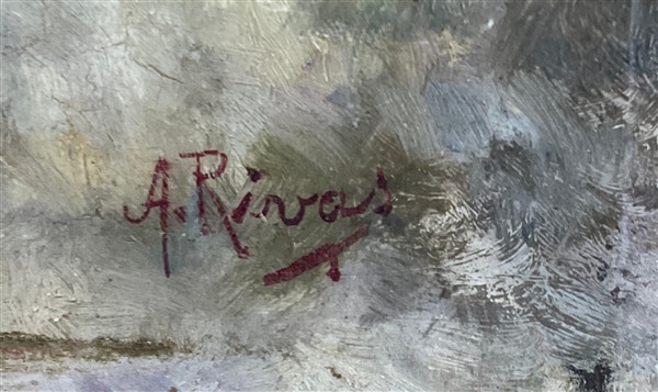 Lotto 1107 | ANTONIO RIVAS "Il riposo" olio su tavola (cm 31x22) firmato in basso a destra i