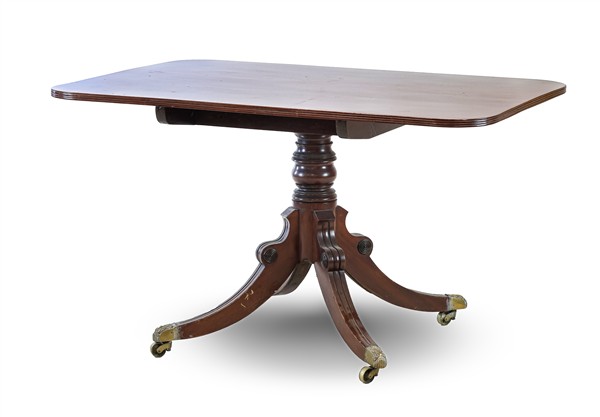 Lotto 1114 | Tavolino con piano a vela in mogano, fusto tornito e gambe sagomate con piedini
