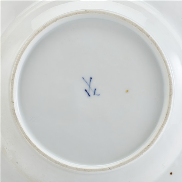 Manifattura di Meissen, secolo XVIII-XIX. Tre fondine in porcellana a profilo m