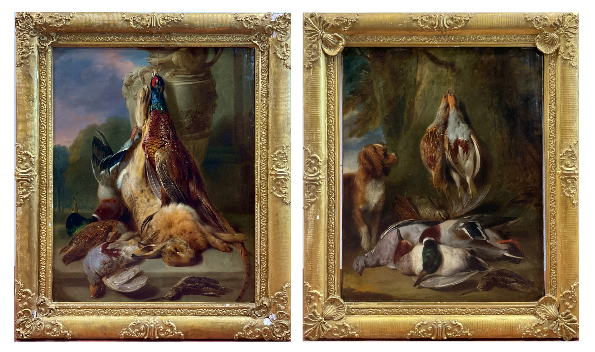 Maestro del secolo XIX, Coppia di composizioni con cacciagione, olio su tela, c