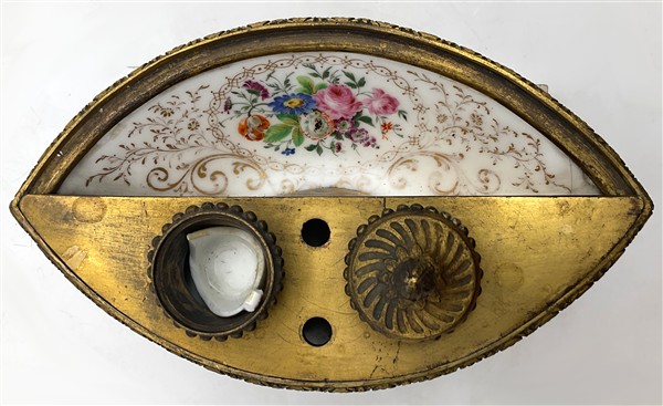 Manifattura francese del secolo XIX. Calamaio con vasca in porcellana decorata