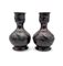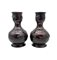 Coppia di vasi a bottiglia in bronzo inciso con decoro a volatili a rilievo.