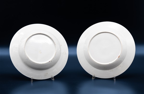 Manifattura di Milano, 1770-1780. Coppia di piatti in maiolica dipinta in polic